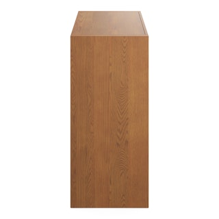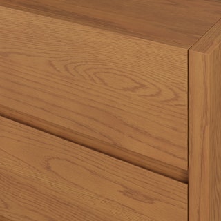 My only reservation is that I wish the hue of the white oak were warmer tone. We have birch bookshelves in the room. The drawers operate smoothly, scale is grea...  More