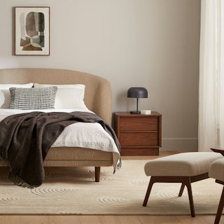 You know those big teddy bears you cuddled with as a kid? The Kayra is like that. Something about its super plush bouclé fabric, sculpted headboard, and curvy proportions make this bed both aesthetically pleasing and soothing to your inner child.