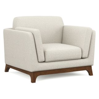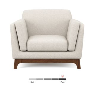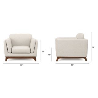 The Ceni armchair fuses classic, but modern, style with its neutral tone, plush seats, sleek track arms and clean lines. Its beautifully crafted wooden base enhances its strong and sturdy construction, while its plush seat cushions, backrests and armrests allow you to snuggle up comfortably. Pair the Ceni armchair with the Ceni loveseat or Ceni sofa for a perfect look.