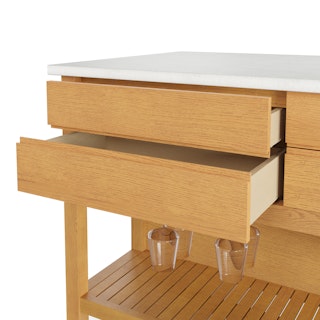 If you could bring only three things to your kitchen island, what would they be? Friends? Food? Wine? Great choices, because we designed the Quincy with all three in mind. Our version of the kitchen island offers spacious storage, extra seating, and a generous counter top for food prep — finally, space to roll out the family’s famous biscuit recipe. Go make grandma proud.
