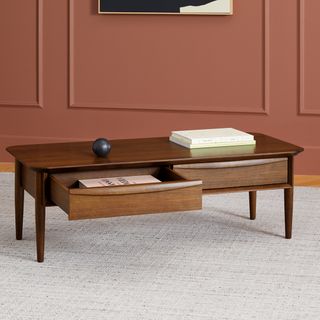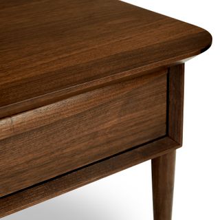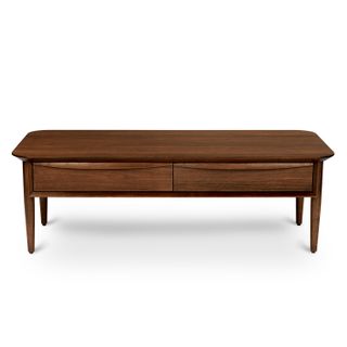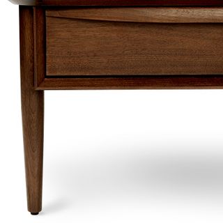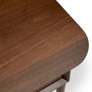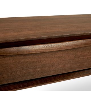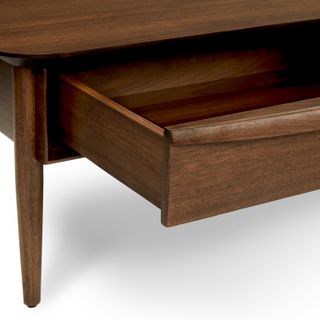 A Mid-Century dream. The Lenia works just as well in a sprawling ranch house as it does in a tiny New York apartment. A solid wood-trimmed surface provides space to showcase your latest design magazines and favorite architecture books. Have an impromptu visit? The double drawers are there to stash away the mess.