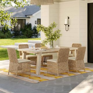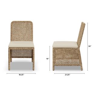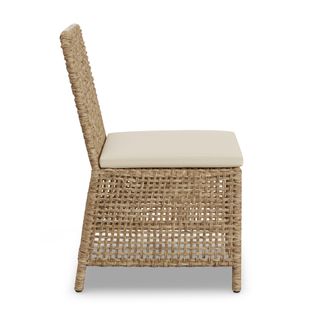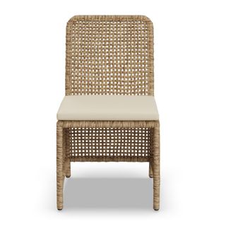 The best kind of fair-weather friend. With synthetic all-weather wicker, the Robbi Dining Chair just wants to spend the summer outside, basking in the sun and soaking up the happy vibes of your al fresco dinners. The open-weave wicker feels visually light and relaxed, and the thickly stuffed, weather-resistant cushion is the perfect spot to rest after a long day of playing in the yard.