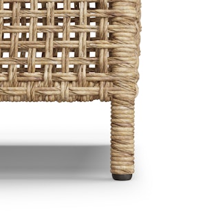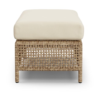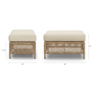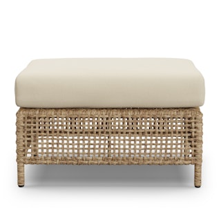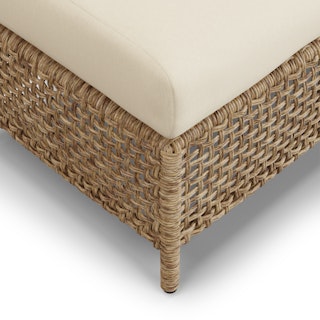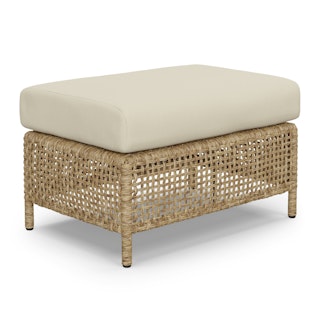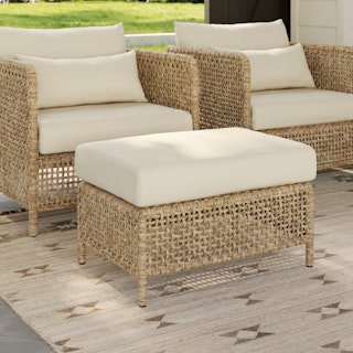 The best kind of fair-weather friend. With synthetic all-weather wicker, the Robbi Ottoman just wants to spend the summer outside, basking in the sun and soaking up the happy vibes of your al fresco dinners. The open-weave wicker feels visually light and relaxed, and the thickly stuffed, weather-resistant cushion is the perfect spot to rest after a long day of playing in the yard.
