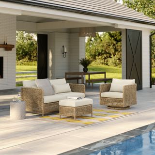The best kind of fair-weather friend. With synthetic all-weather wicker, the Robbi Loveseat just wants to spend the summer outside, basking in the sun and soaking up the happy vibes of your al fresco dinners. The open-weave wicker feels visually light and relaxed, and the thickly stuffed, weather-resistant cushion is the perfect spot to rest after a long day of playing in the yard.