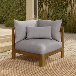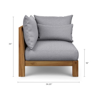 Friends in low places? With the help of the Cove collection, that will be your deck this summer. Casual and elegant, the Cove Corner Module combines simple framing with interesting details, like its plinth base and sharply tailored cushions. Designed to be low and loungey, it manages to feel pulled together and relaxed at the same time.