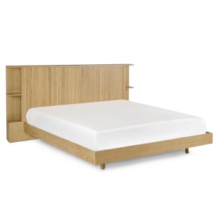 Make space with the Kouva bedroom bundle. With its unique solid oak tambour design and modern open shelving, the Kouva is ready to house your book collection, your empty water glasses, your alarm clock, and a midnight snack. And the Basi? It's just happy to hold your mattress.