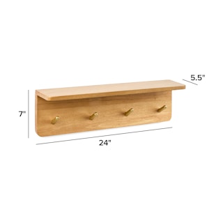 Williams 24" Shelf and Coat Rack - Brass and Oak