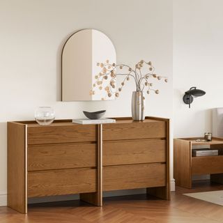 Designed to pair with its shelf companion of the same name, yet bold enough to command attention as a stand-alone piece adorning your wall. Crafted with a solid wood frame and securely hung from a french cleat, this mirror is your perfect companion for last-minute hair adjustments before dashing out the door. With its sturdy design, you can be confident it will stay put, even when you accidentally slam the door.