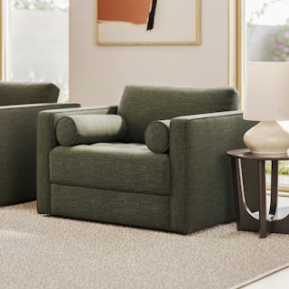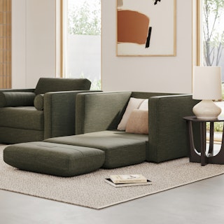 Shop Similar ItemsYou know what they say: if you can't beat 'em, make the extremely cozy lounge chair into a sleeper lounge. People kept falling asleep on the Sven, so we've cut out the middle man and made the Sven Sleeper Lounge Chair. A tufted seat, precise piping, and round bolster pillows, plus! Plus! A fold out mattress so you can take your Sven lounge into a Sven nap. Stick that in your living room and sleep on it.