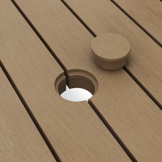 - Umbrella hole with removable cap in center of tabletop