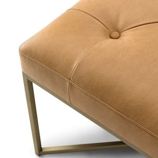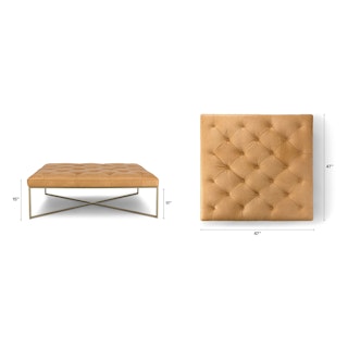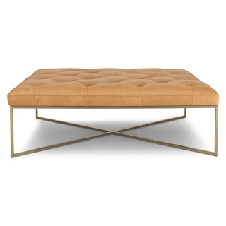 This versatile piece of furniture can transition from coffee table to footrest with effortless style. A tufted leather surface with a steel structure base makes this piece an industry-chic addition to your living space. Natural color variations, marks, wrinkles and creases are part of the unique characteristics of full grain leather. To ensure a long and useful life, avoid sitting or jumping on this ottoman.