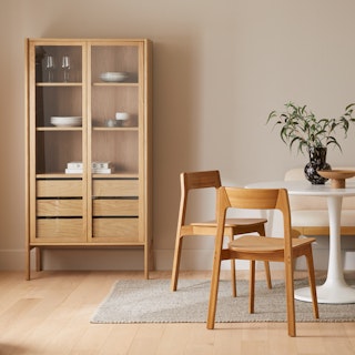 Plates, bowls, linens, an extensive whiskey collection — hey, you work hard to collect and preserve all your things, it’s about time you flaunt your stuff. With its minimal wood frame, glass cabinet doors, and spacious storage, the Mysen Cabinet simultaneously declutters your space while displaying all your favorite collections.