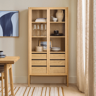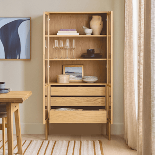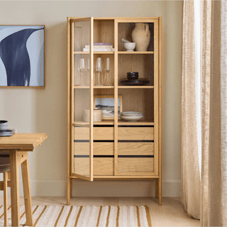 Plates, bowls, linens, an extensive whiskey collection — hey, you work hard to collect and preserve all your things, it’s about time you flaunt your stuff. With its minimal wood frame, glass cabinet doors, and spacious storage, the Mysen Cabinet simultaneously declutters your space while displaying all your favorite collections.