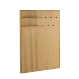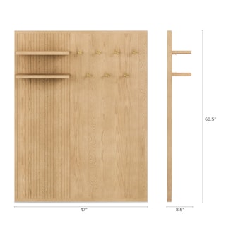 Meet Kouva. It's refined, well-balanced, and as aesthetically pleasing as the clothing you'll hang from it. With a generous amount of coat hooks and two sizeable shelves, you'll have enough storage for even the biggest family get-togethers. Topped off with a pleasing fluted solid wood design, Kouva gives your entryway the glow-up it deserves.