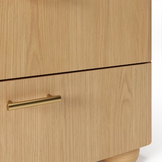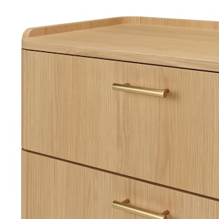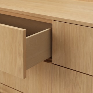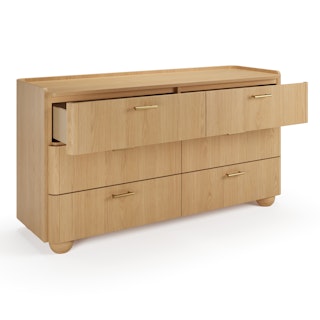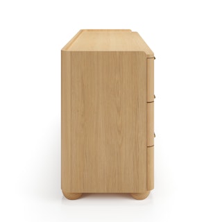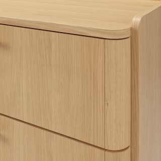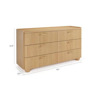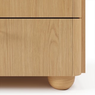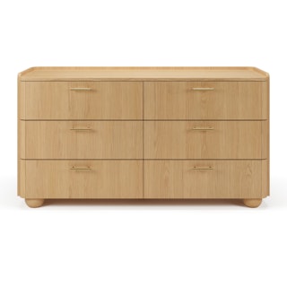 For those who appreciate a refined aesthetic without sacrificing functionality, the Miila features six spacious drawers outfitted with brass knobs, which finish your ample storage with a touch of sophistication. Along with its soft, rounded shape atop its spherical feet, the Miila is visually comforting, creating a calming bedside atmosphere. Charm, refinement, storage... what else could you want from a dresser?