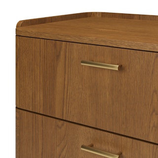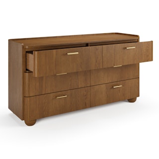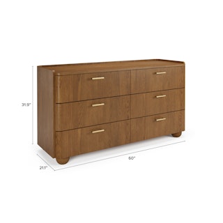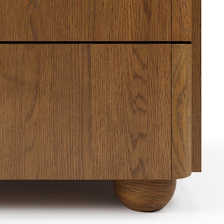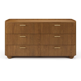 For those who appreciate a refined aesthetic without sacrificing functionality, the Miila features six spacious drawers outfitted with brass knobs, which finish your ample storage with a touch of sophistication. Along with its soft, rounded shape atop its spherical feet, the Miila is visually comforting, creating a calming bedside atmosphere. Charm, refinement, storage... what else could you want from a dresser?