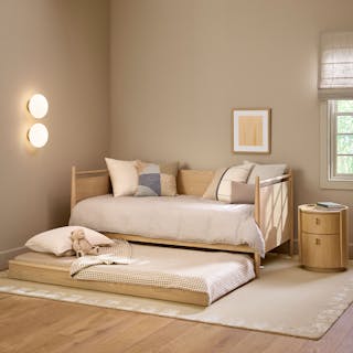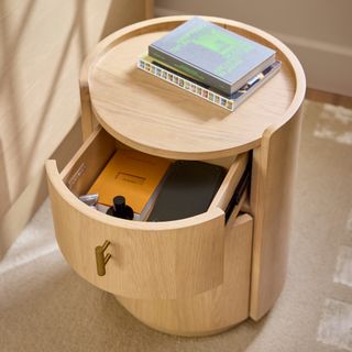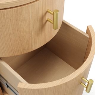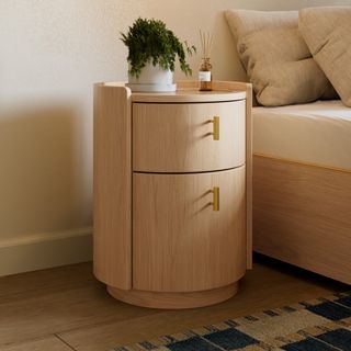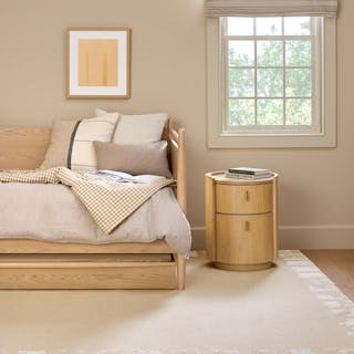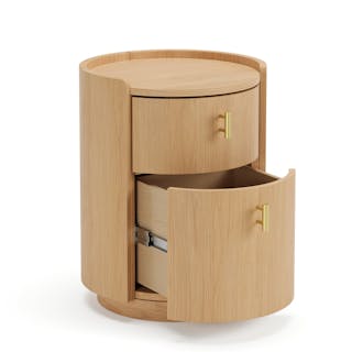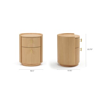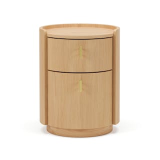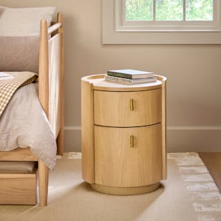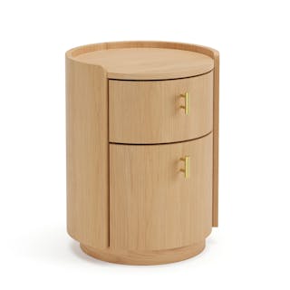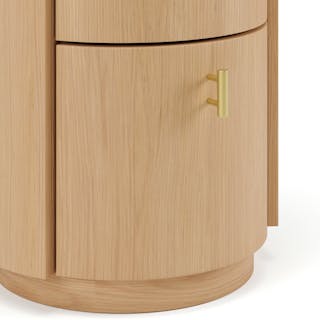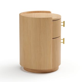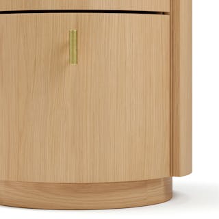 For those who appreciate a refined aesthetic without sacrificing functionality, the Miila features two spacious drawers outfitted with brass knobs, finishing your ample storage with a touch of sophistication. Along with its soft, rounded shape atop its plinth base, the Miila is visually comforting, creating a calming bedside atmosphere. Charm, refinement, storage... what else could you want from a nightstand?