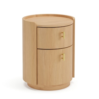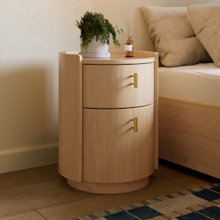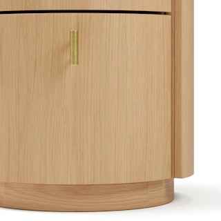 For those who appreciate a refined aesthetic without sacrificing functionality, the Miila features two spacious drawers outfitted with brass knobs, which finish your ample storage with a touch of sophistication. Along with its soft, rounded shape atop its plinth base, the Miila is visually comforting, creating a calming bedside atmosphere. Charm, refinement, storage... what else could you want from a nightstand?