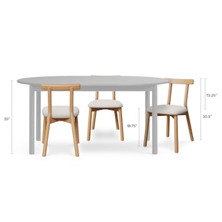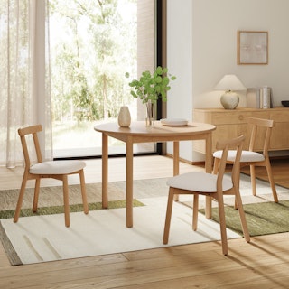 The Dine and Unwind Bundle embodies all the light and airy qualities of the Scandi design style. The Ulka chair features a curved backrest that seamlessly integrates with the rounded-edge frame of the Heidi table, making the desire to remain at the table strong — even well past dinner's end. Made from solid and veneered wood, this bundle reflects a minimal, soft, and compact aesthetic, effortlessly embracing its Scandinavian roots.