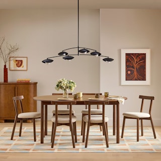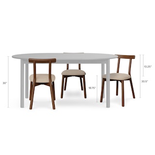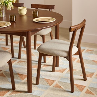 The Dine and Unwind Bundle embodies all the light and airy qualities of the Scandi design style. The Ulka chair features a curved backrest that seamlessly integrates with the rounded-edge frame of the Heidi table, making the desire to remain at the table strong — even well past dinner's end. Made from solid and veneered wood, this bundle reflects a minimal, soft, and compact aesthetic, effortlessly embracing its Scandinavian roots.
