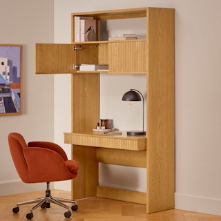 Do you have a wall just itching to be plastered with books, records, and character? Well, let us introduce you to our Kouva Essentials Bundle. Modern open-concept shelving with fluted wood fronts, plenty of closed storage, and a workspace to boot offer visual interest and practicality without being overly showy. Comprised of our Kouva Modular Wall Desk and Bookcase, this bundle is interesting, refined, and well-balanced. Bring your wall to life with Kouva.