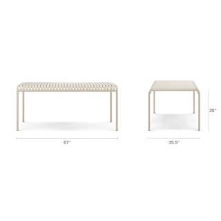 Stripes are always in. The Sarek's clean, modern shape and fun banded details make for a fun, functional backyard addition. With mix-and-match chairs, the Sarek Dining set is Instagram ready and primed to receive your spritzes, chip bowls, and various dips.
