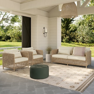 The best kind of fair-weather friend. With synthetic all-weather wicker, the Robbi Loveseat Set just wants to spend the summer outside, basking in the sun and soaking up the happy vibes of your al fresco dinners. The open-weave wicker feels visually light and relaxed, and the thickly stuffed, weather-resistant cushion is the perfect spot to rest after a long day of playing in the yard.