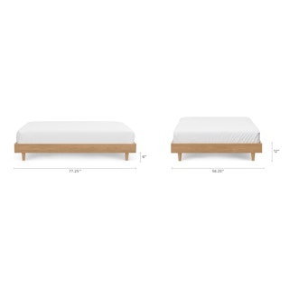 Modern and dreamlike, the Basi floating bed lulls the sleepy with its sleek, minimalist style and super-solid construction. Using the highest quality veneer, solid-plywood support slats, and solid wood legs, the Basi will support your dreams for years to come.