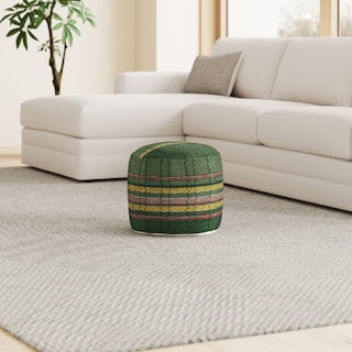 Everyone, meet Tapio. This cozy pouf features a soft cotton cover, filled with polystyrene beads, making it perfect for fidgety guests. With a vibrant, multicolored striped design wrapped around its green exterior, Tapio is the warm and supportive pouf for in-a-pinch seating or tired leg resting.