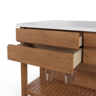 If you could bring only three things to your kitchen island, what would they be? Friends? Food? Wine? Great choices, because we designed the Quincy with all three in mind. Our version of the kitchen island offers spacious storage, extra seating, and a generous countertop for food prep—finally, space to roll out the family’s famous biscuit recipe. Go make grandma proud.