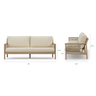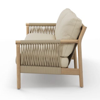 More than just a pretty face. The Rosa is built from solid eucalyptus wood, with dowelled legs and bracing. And the cushions — not only are they high density foam, they are upholstered with UV- and water-resistant fabric. With airy criss-cross weave details, the Rosa is as pretty as she is comfortable. And she is really, really comfortable.