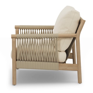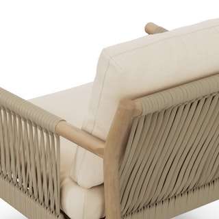 More than just a pretty face. The Rosa is built from solid eucalyptus wood, with dowelled legs and bracing. And the cushions — not only are they high density foam, they are upholstered with UV- and water-resistant fabric. With airy criss-cross weave details, the Rosa is as pretty as she is comfortable. And she is really, really comfortable.