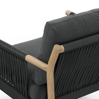 Shop Similar ItemsMore than just a pretty face. The Rosa is built from solid eucalyptus wood, with dowelled legs and bracing. And the cushions — not only are they high density foam, they are upholstered with UV- and water-resistant fabric. With airy criss-cross weave details, the Rosa is as pretty as she is comfortable. And she is really, really comfortable.