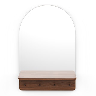 Hold it — ah, the function of the Williams shelf, so deftly described. This low-profile shelf is great for keeping your entryway clutter-free and nicely styled. Topped off with an arched mirror, you can sort those stray hairs as you run out the door, too. Made from solid wood and finished with brushed brass hooks, and finished with a not-too-big ledge to combat the urge to dump everything at the door.
