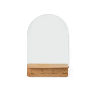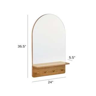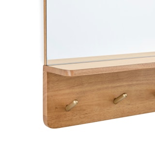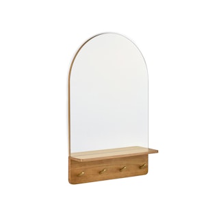 Williams 24" Shelf, Coat Rack, and Mirror - Brass and Oak