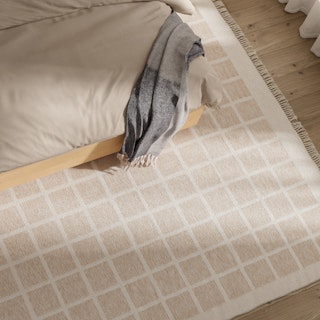 Soft, natural, and with a fun fringe finish, Norell has it all. Handwoven from a blend of wool and cotton, Norell's windowpane pattern in ivory and sand brings a pinch of Scandi design charm to your home decor. Combed through or left wild, Norell always emerges well-put together.