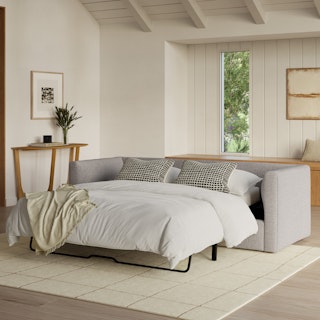 How do you want your sofa to feel? Elevated. Comfortable. Calm. Collected. With clean details and pleasing design heft, the Marina sofa bed manages to feel at once laid back and put together. Generously padded seats and armrests encourage long periods of meandering; fold out that memory foam mattress for a more serious nap. Upholstered with Clover fabric, the Marina is treated with a stain-repellant C0 finish, offering exceptional protection to your sofa while being free of gross forever-chemicals. Throw on your favorite 90s romcom and bask in a little nostalgia.