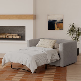 How do you want to feel? Elevated. Comfortable. Calm. Collected. With clean details and pleasing design heft, the Marina sleeper lounge chair manages to feel at once laid back and put together. Generously padded seats and armrests encourage long periods of meandering; fold out that memory foam mattress for a more serious nap. Upholstered with Hestia fabric, the Marina is treated with a stain-repellant C0 finish, offering exceptional protection to your sofa while being free of gross forever-chemicals. Throw on your favorite 90s romcom and bask in a little nostalgia.