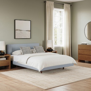Tessu Queen Low Profile Upholstered Bed - Silver Light Blue