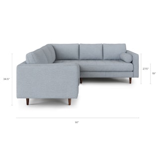 Meet the latest addition to our iconic Sven collection, the Sven 91" Corner Sectional. With its tufted bench seat upholstered in our LifeGuard Silver performance fabric, the Sven 91" Corner Sectional redefines the focal point within your living space. Along with its timeless solid tapered legs, and undeniably mid-century charm, this new iteration offers a new perspective on a classic.