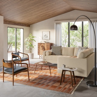 Love this couch. Nice and firm but very comfortable. Fits my space perfectly. Delivery was smooth. White glove service is definitely worth the extra cost.