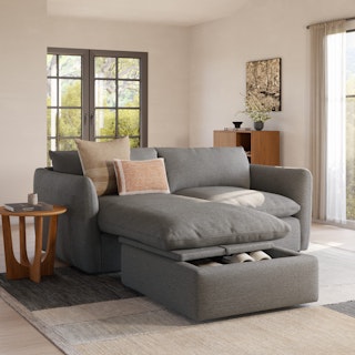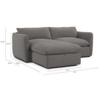Cloud kingdom, population: you. The Leigh is our comfiest sofa ever, and now it's available as the comfiest hybrid of all: a reversible storage sectional. With a reversible chaise cushion and ottoman for left or right orientation, ample storage space within the ottoman, and stuffed with super-soft foam and duck down, the Leigh is your perfectly-sinkable sofa solution that still looks polished and poised.