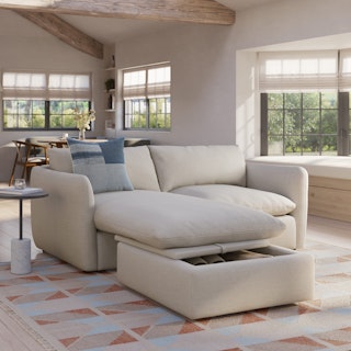 Cloud kingdom, population: you. The Leigh is our comfiest sofa ever, and now it's available as the comfiest hybrid of all: a reversible storage sectional. With a reversible chaise cushion and ottoman for left or right orientation, ample storage space within the ottoman, and stuffed with super-soft foam and duck down, the Leigh is your perfectly-sinkable sofa solution that still looks polished and poised.
