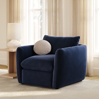 Cloud kingdom, population: you. The Leigh lounge chair is our comfiest lounger ever, with thoughtful details that make it the perfect place to put your feet up and nap/read/watch a show/snuggle/stare into the middle distance. Three seat styles mean you can build the perfect spot to crash, and gently angled armrests make it easy to relax without immediately falling asleep. Upholstered with stain-resistant Hale fabric, the Leigh is here to help you to rest easy.