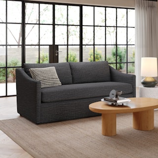 I was originally drawn to this beautiful love seat for the shape. It’s so unique and I love the softness the rounded shape on the arms brings to our living room...  More
