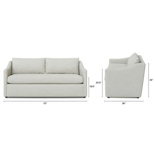 A minimal look with maximum impact. The Landry marries laid back comfort with elegant details to produce a loveseat that is as comfortable hosting movie night as it is a cocktail hour. Sloping sleigh-style arms and clean straight lines make it simple to pair this loveseat with many different styles. Try it with a warm white backdrop, against a wildly patterned rug, or draped with your favorite blanket. The Landry is easygoing style at its best.