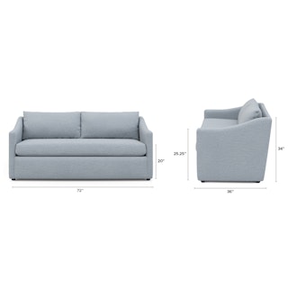 A minimal look with maximum impact. The Landry marries laid back comfort with elegant details to produce a loveseat that is as comfortable hosting movie night as it is a cocktail hour. Sloping sleigh-style arms and clean straight lines make it simple to pair this loveseat with many different styles. Try it with a warm white backdrop, against a wildly patterned rug, or draped with your favorite blanket. The Landry is easygoing style at its best.