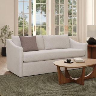 I was originally drawn to this beautiful love seat for the shape. It’s so unique and I love the softness the rounded shape on the arms brings to our living room...  More