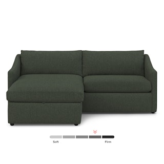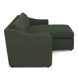 A minimal look with maximum impact… and maximum seating area. The Landry marries laid back comfort with elegant details to produce a sectional that is as comfortable hosting movie night as it is a cocktail hour. Sloping sleigh-style arms and clean straight lines make it simple to pair this sectional with many different styles. Try it with a warm white backdrop, against a wildly patterned rug, or draped with your favorite blanket. The Landry is easygoing style at its best.