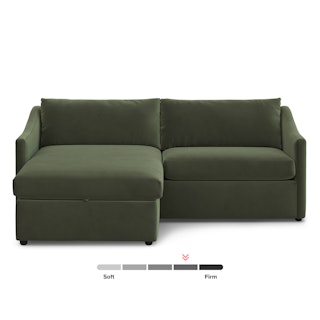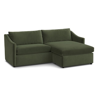 A minimal look with maximum impact… and maximum seating area. The Landry marries laid back comfort with elegant details to produce a sectional that is as comfortable hosting movie night as it is a cocktail hour. Sloping sleigh-style arms and clean straight lines make it simple to pair this sectional with many different styles. Try it with a warm white backdrop, against a wildly patterned rug, or draped with your favorite blanket. The Landry is easygoing style at its best.